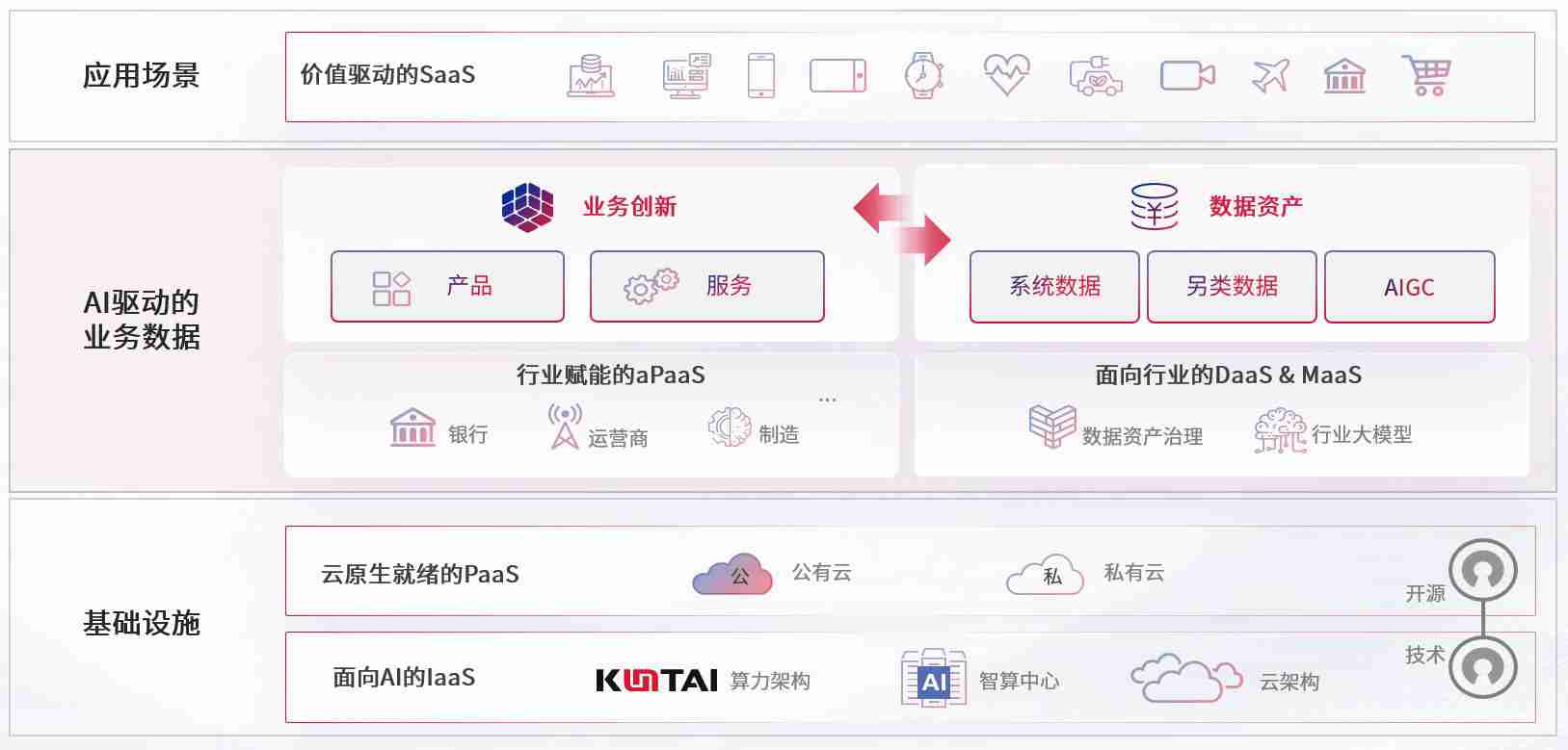 数字时代,,,围绕企业数字化转型的关键要素,,,,Z6尊龙数码开创性的提出数云融合战略和技术体系框架,,着力在云原生、、数字原生、、、AI原生和信创产业上架构产品和服务能力,,,为处在不同数字化转型阶段的快消零售、、、汽车、、、金融、、、医疗、、政企、、、、教育、、运营商等行业客户提供泛在的敏捷IT能力和融合的数据驱动能力,,,,构建跨界融合创新的数字业务场景和新业务模式,,助力企业级客户建立面向未来的核心能力和竞争优势,,全面推动社会的数字化、、、智能化转型升级。。