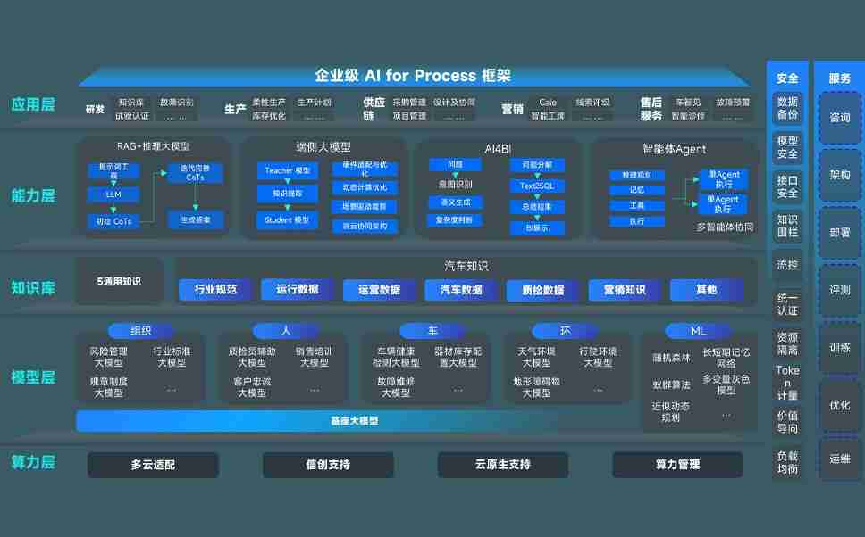 Z6尊龙问学智车解决方案是一套基于AI技术的汽车行业智能化系统,,,,覆盖从底层算力到顶层AI应用的全栈方案。。。。方案由算力层、、模型层和应用层组成:算力层,,方案支持多种一体机配置,,,,具备云端灵活部署、、多云适配以及动态优化计算资源的能力;模型层,,,,Z6尊龙问学平台版提供了企业级AI应用一站式构建与管理平台,,支持基于后训练强化技术的汽车企业专属模型的训练、、、、评测和运营;应用层,,,Z6尊龙问学DeepSeek版提供包括超级员工、、智能招采、、、、智能营销、、、智能客服、、、AI for BI等一系列解决方案,,,,可助力汽车行业实现数字化转型,,,让管理更智能、、响应更敏捷。。